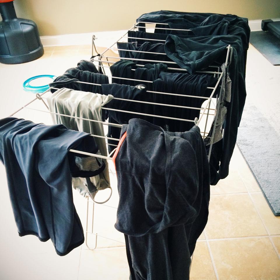 -And HANG DRY. Before and after you wash. You should really hang your workout clothes up after you peel them off. Let the sweat evaporate, don’t throw them into your laundry pile all crumpled up and wet to fester and rot. Hang them to dry after washing, too. I am personally a hang dry-only freak. I hang dry everything except for sheets and towels. Because I can’t handle the emotional damage that shrinking will cause. I’m dead serious about this. Do not wash my clothes. Beware the wrath of the girl whose favorite whatever doesn’t fit anymore because it accidentally got thrown in the dryer. You do not want to be on the receiving end of that torrent of uncut rage and tears.