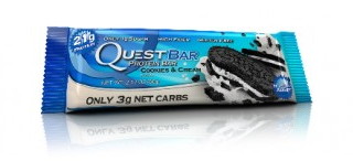 Dude. I was at ye olde Vitamin Shoppe the other day contemplating protein pudding, and happened upon Quest Bars. I tried a cookie dough and a cookies and cream. And they are the shit. I love me some cookie dough. I am capable of eating half a tube, easy. But obviously that’s not a constructive activity. This Quest Bar was very cookie dough-like and delicious. Screw you Atkins bars. Screw you Pure Protein. I know I shouldn’t be eating any of these science experiments, but when I need some “junk” food, I am absolutely Quest Bar for life now.