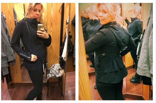 You can totally hide for a while. I just layered tanks and high-low tops and it was totally fine for the first bit. I have been able to wear regular tank tops so far. (I am a pear, though. Apples, maybe not. We get what we get.) But I’m at 26 weeks now, and I don’t think I can really wear my regular ribbed tanks anymore.  I have a stash of maternity tanks (rouched sides, extra material) ready to go. You’d think you’d want to wear baggy tops, but with me it’s kind of the opposite. Because my beloved tunics don’t flow and hide. Now they kind of almost…fit. It’s not a fun feeling.
