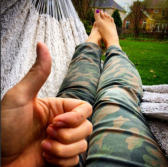 I just had a baby. Which means I’ve been living in stretchy black leggings and yoga pants for months and months and months. Yesterday, it was in the 70s and sunny outside. And I put on not-stretch pants for the first time in a long long time. AAAAAAh. Also, the hammock’s back. Double sweet.