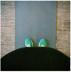 This is me starting to work out again. And by that I mean doing my prenatal workout as my postpartum (that just means after baby, not postpartum depression) workout. Note the lack of waist and obvious tip toe leg-lengthening trick.
