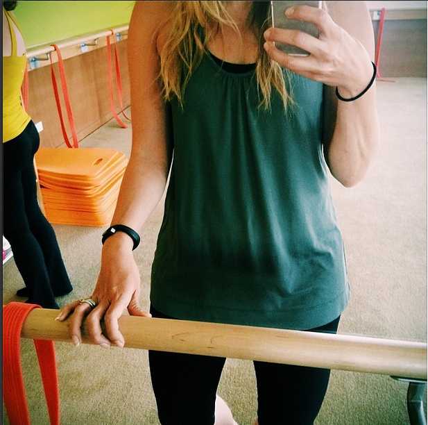 You’ll notice I wear mostly tunics. Because I’m a pear, and it just kind of grazes over my figure. I wear a regular tank top for boot camp, because they often have us on our hands and feet jumping around, so you don’t want your shirt to fly up. I should be wearing something snug in the middle to Dailey Method. But…that’s more of a fashion show scene, so I don’t care. I bring out the good tops for those classes.